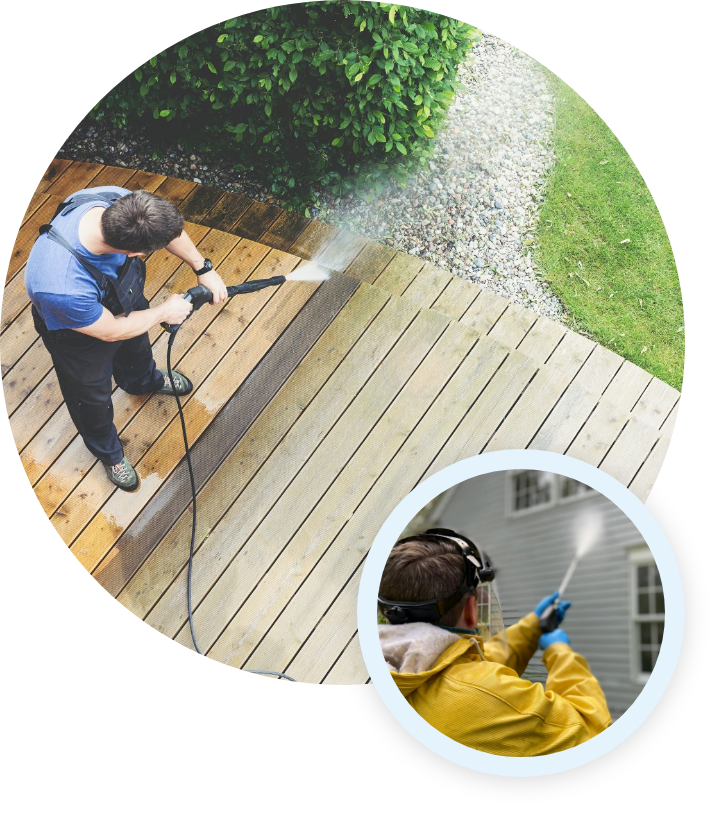 Deep clean wooden decks and patios to remove dirt, algae and stains for a like-new finish.
