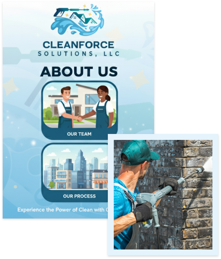 At Clean Force Solutions LLC, we’re more than just a pressure washing company — we’re a team committed to restoring the beauty, safety and value of your property. With years of hands-on experience in both residential and commercial cleaning, our owner brings a deep understanding of customer service and a passion for spotless results. From single-family homes to HOA communities and business properties, we approach every job with care, professionalism and a dedication to exceeding expectations.